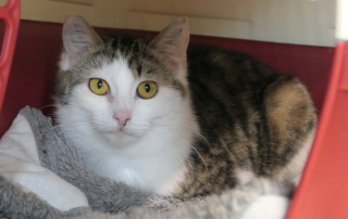 Charakter: Ja wir wissen, Begeisterung sieht anders aus. Doch auch diese 3 Mäuse müssen bald die Reise in ihr neues Leben antreten und da kommt man um den Foto-Termin nicht drum rum. Falafel (braun-weiß) ist der einzige Mann in der Runde, unterscheidet sich aber sonst nicht großartig von den 2 Mädels. Sie alle kennen Menschen, und haben in einem Zuhause gelebt, doch die Umstellung im Tierheim fällt ihnen noch schwer. Dabei sind sie völlig harmlos und frieren einfach nur ein. Im Moment können sie mit Streicheleinheiten noch nichts anfangen, doch das wird sicher wieder kommen. Doch dazu brauchen sie ein richtiges Zuhause, in dem sie ankommen können. Vorallem für Falafel wäre es wichtig mit einer der Kätzinnen zusammen zu bleiben, da er sich am schwersten tut. Wichtig ist trotzdem, und vorallem falls man eine von ihnen einzeln übernimmt, das sie ein katzenerfahrendes Zuhause mit Geduld brauchen. Kleinere Kinder sollten sich daher nicht im Haushalt befinden.