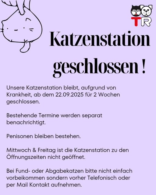 Für Notfälle, Fund- oder Abgabetiere sind wir nach telefonischer Absprache (07121/14480660) selbstverständlich da