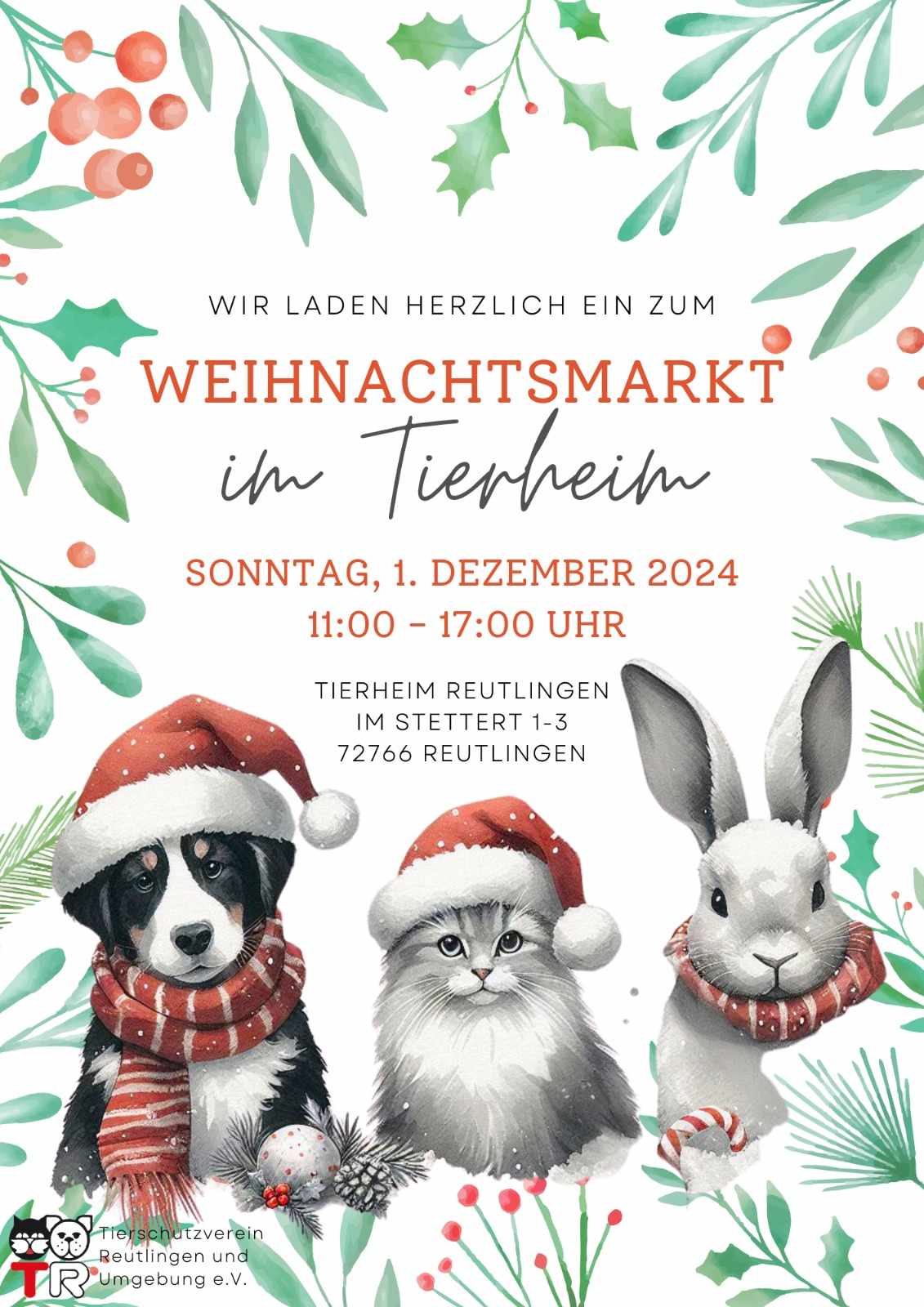 Wir laden euch ganz herzlich zum Weihnachtsmarkt im Tierheim ein