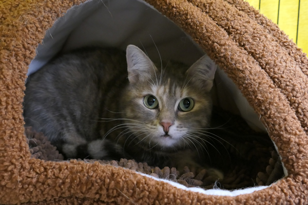 Charakter: Anouschka ist eine Kätzin im Besten alter, die sich laut Aussage des Vorbesitzers mit den Vorhandenen Katzen nicht mehr verstand. Leider kam sie mit sehr schlimmen eitrigen Zähnen zu uns die erstmal gezogen werden mussten. Davon erholt sie sich im Moment und findet hier generell noch alles unheimlich. Wie sie sich (ohne Zahnschmerzen) mit anderen Katzen versteht wissen wir im Moment noch nicht. Hinter der etwas pummeligen Kätzin, die erst mal große Augen macht und faucht wenn sie einen sieht, steckt ein sensibler Kern. Sie ist unglaublich neugierig, bestechlich und lässt sich auch streicheln. Doch der Stress hier ist ihr einfach zu viel. Anouschka sucht ein ruhiges Zuhause, gerne als Einzelprinzessin, in dem es endlich mal um ihre Bedürfnisse geht. Kleine Kinder sollten nicht vorhanden sein.