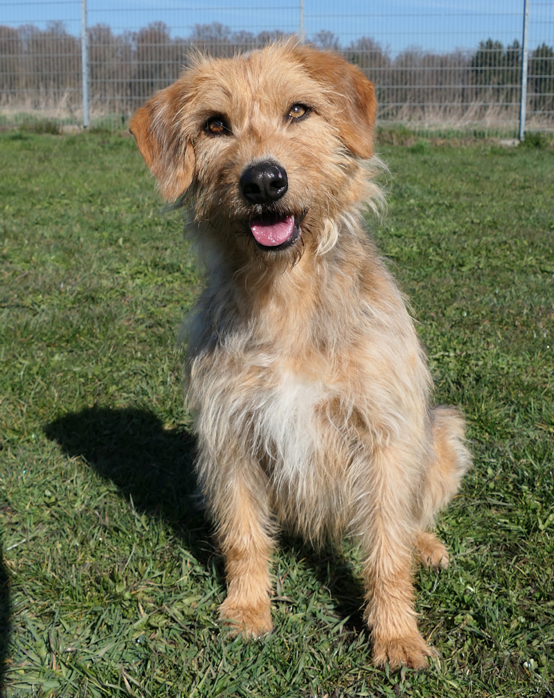 Eine absolute Traumhündin ist unser Neuzugang Becca. Die rauhaarige, mittelgroße Hündin erinnert stark an einen serbischen Laufhund, ist aber vor allem ein klasse Familienhund. Sie ist unerschrocken, freundlich, aufgeschlossen und hat keine Kontaktschwierigkeiten mit fremden Menschen. Mit anderen Hunden ist sie verträglich, geht super gerne spazieren, zeigt sich motiviert und lernbegeistert. Zwar hat sie bisher noch nicht viel kennengelernt ist aber sehr menschenbezogen, bestechlich und aufmerksam. Schnüffelspiele kommen ihrem Interesse entgegen, in wie weit ihr Jagdinteresse ausgeprägt ist, können wir derzeit noch nicht sagen. Becca würde sich über eine aktive Familie, gerne auch mit Kindern sehr freuen.