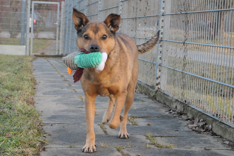 Ziemlich selbstbewusst und aufgeschlossen, jedenfalls ohne Berührungsängste bei fremden Menschen, ist unser Jonathan. Obwohl er bisher sicher nicht viel erlebt hat und auch noch viel lernen muss, ist er unerschrocken, probiert einfach aus und zeigt sich sehr menschenbezogen. Manchmal weiß er vor lauter Freude über die viele Zeit mit Menschen gar nicht wohin und braucht da noch etwas Anleitung. Geschirr und Leine sind kein Problem, er geht sehr gerne spazieren und scheint auch das Signal „sitz“ zu kennen. Manchmal muss er in seiner ungestümen und überschwänglichen Freude gebremst werden, lässt sich das aber gut sagen.