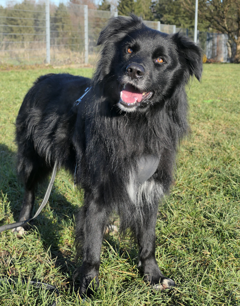 Signale muss er noch lernen, an der Leine läuft er sehr gut mit. Obwohl er in seinem vorherigen Zuhause durchaus die Rolle des Aufpassers am Zaun übernommen hat, ist er hier kein Kläffer und hat kein Problem auch bei fremden Menschen schnell Vertrauen aufzubauen.