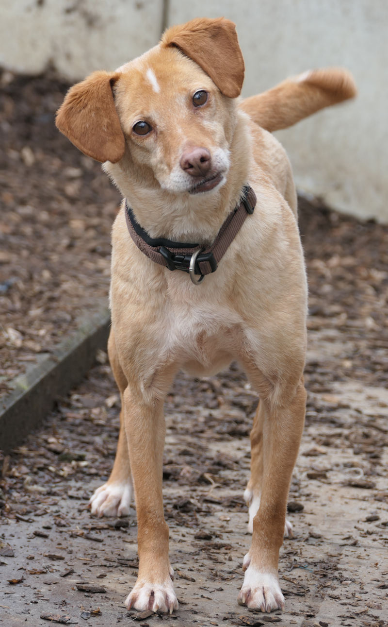 Mila kommt ursprünglich aus extrem schlechter Haltung, die sie aufgrund eines schweren Beißvorfalls kaum überlebt hätte. Wie durch ein Wunder scheint sie keine gesundheitlichen Langzeitfolgen davongetragen haben. Man merkt ihr aber deutlich die Unsicherheit an, wenn sie merkt, dass es speziell um sie geht. Dann flüchtet sie erstmal, beschwichtigt und jammert schon mal vorsorglich. Dabei ist Mila eigentlich eine sehr fröhliche, menschenbezogene Hündin, die sich über Streicheleinheiten fast so sehr wie über Leckerlis freut. Mit anderen Hunden ist sie sehr gut verträglich, geht dem Streit aus dem Weg. Sie ist aufmerksam, neugierig und motiviert. Kennengelernt hat sie bisher allerdings nicht viel, so ist das Tragen von Geschirr und Leine kein Problem, soll sie dann aber an der Leine laufen versteinert sie und kann sich nicht bewegen. Signale kennt sie nicht, auch im Auto mirfahren muss sie noch lernen, alleine bleiben ist dagegen kein Problem.