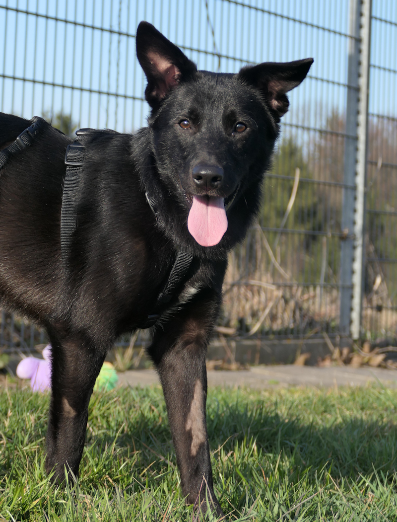 Mit seinem schlanken, sportlichen Körperbau, der spitzen Nase und den fast stehenden Ohren erinnert Mishka an einen Schäferhund-Mix, allerdings ist er wesentlich kleiner und leichter. Mishka ist jedenfalls ein junger, unternehmungslustiger Rüde, der sich im Tierheim freundlich, aufmerksam und aufgeweckt verhält. Bisher scheint er noch nicht viel kennengelernt zu haben, für ihn ist alles so aufregend und spannend, dass er sich meist kaum konzentrieren kann. Signale kennt er keine, auch im Auto mitfahren und alleine bleiben muss er noch lernen. Dafür ist er bestechlich, geht sehr gerne mit spazieren und wäre ideale Sportbegleitung für Joggen, Wandern, Fahrradfahren… Mishka ist jung, möchte lernen, möchte geistig und körperlich beschäftigt und ausgelastet werden. Dafür sucht er eine aktive Familie, gerne auch mit Kindern, die ihm geduldig und einfühlsam alles Wichtige beibringen.