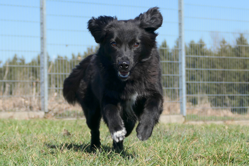Jung, dynamisch und voller Lebensfreude flitzt die Mischlingshündin Poppy mit den anderen Hunden durch die Ausläufe. Mit anderen Hunden ist sie sehr gut verträglich und wäre auch gut als Zweithund geeignet. Menschen findet sie ebenfalls toll, vor allem in sicherer und bekannter Umgebung.