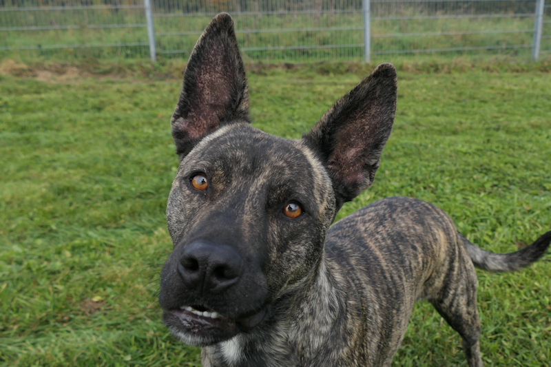 Der hübsche und optisch sehr außergewöhnliche Ravi ist ein freundlicher und sportliche Rüde. Welche Rassen bei ihm mitgemischt haben wissen wir nicht, evtl. ein holländischer Schäferhund. Anfangs etwas zurückhaltend, dann aber sehr anhänglich, aufmerksam und arbeitsfreudig. Signale hat er bisher nicht gelernt, dafür läuft er gut an der Leine mit. Mit anderen Hunden ist er gut verträglich, braucht aber manchmal etwas Anleitung.