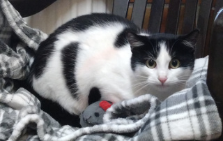 Charakter: George Lukas ist ein stattlicher Kater im besten Alter, doch im Moment einfach nur gefrustet. Der hübsche Kater wurde gefunden, doch bisher vermisst ihn keiner. Leider hatte er eine schlimme Bissverletzung am Bein, doch von Boxenruhe und Behandeln hält er nicht viel. Er würde lieber wieder draußen durch die Welt streifen. An sich ist er ein verschmuster selbstbewusster Kater, der aber auch seinen Willen durchsetzen möchte und seine Freiheit genießt. Er sucht ein katzenerfahrenes Zuhause, ohne kleine Kinder und vermutlich als Einzelprinz.