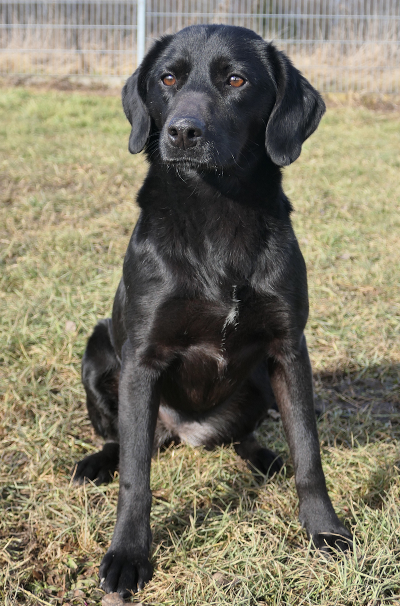Die zarte und schüchterne Zora ist eine freundlich, ruhige Hündin, die jedem Streit aus dem Weg geht. Obwohl sie deutlich kleiner und leichter wie ein typischer Labrador ist, sieht man ihr den Labrador doch deutlich an. Ein sanftes Wesen, immer am wendeln, bestechlich und schnüffelt gerne. Mit anderen Hunden ist sie sehr gut verträglich und wäre auch gut als Zweithund geeignet. Sie freut sich über alle Menschen, braucht aber Zeit um Vertrauen aufzubauen. Dann läuft sie gut an der Leine mit, ist interessiert, motiviert und aufmerksam. Signale kennt sie allerdings noch keine und viele Dinge und Situationen findet sie noch ziemlich unheimlich. Dann braucht sie Unterstützung und Halt durch ihre Bezugsperson.